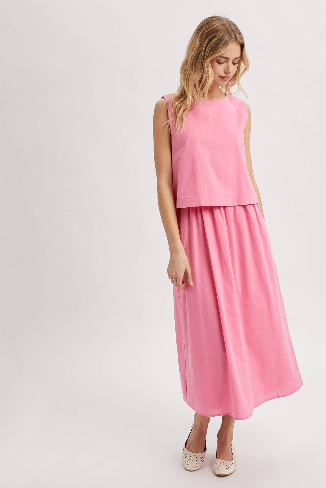COTTON TANK MIDI DRESS - BUTTONS ON THE BACK, LINED - SLEEVELESS, ROUND NECK, EASY, COMFY, CASUAL, EVERYDAY, SUMMER, SPRING, BABY SHOWER