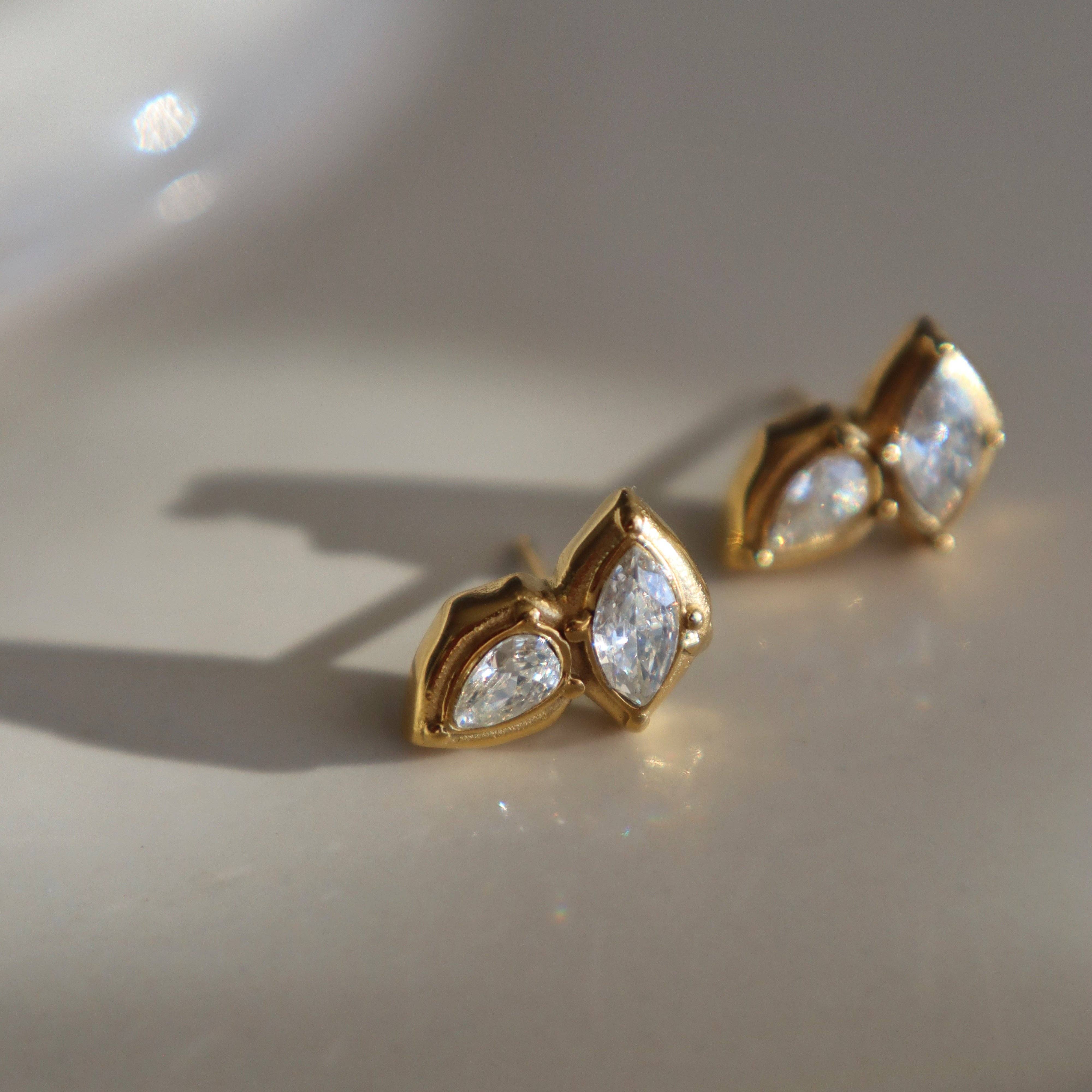 The Rianne Studs are a classic and the perfect addition to any jewelry collection. With two sparkling stones, they add just the right amount of sparkle to any outfit. A must-have for any fashionista (and they make a great gift too)!