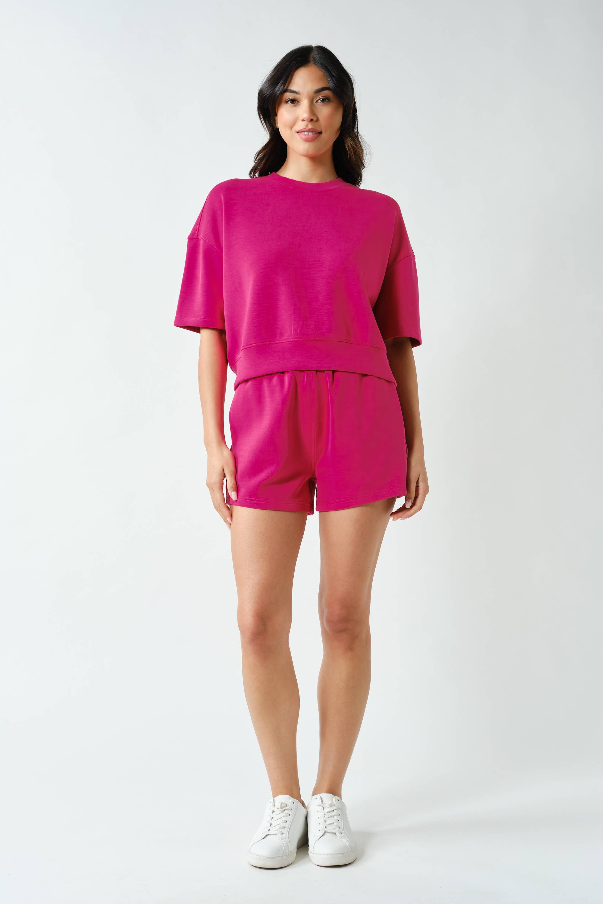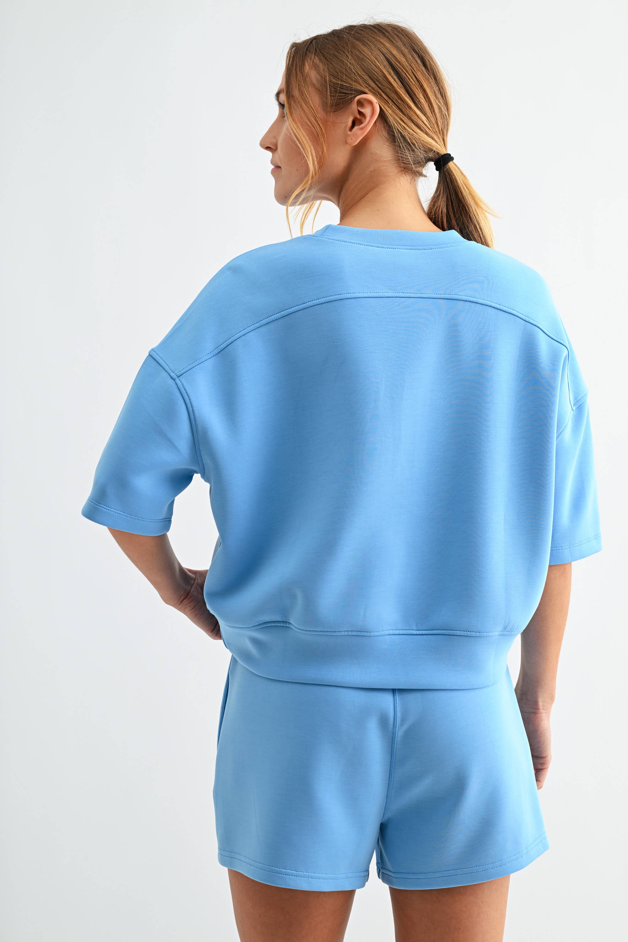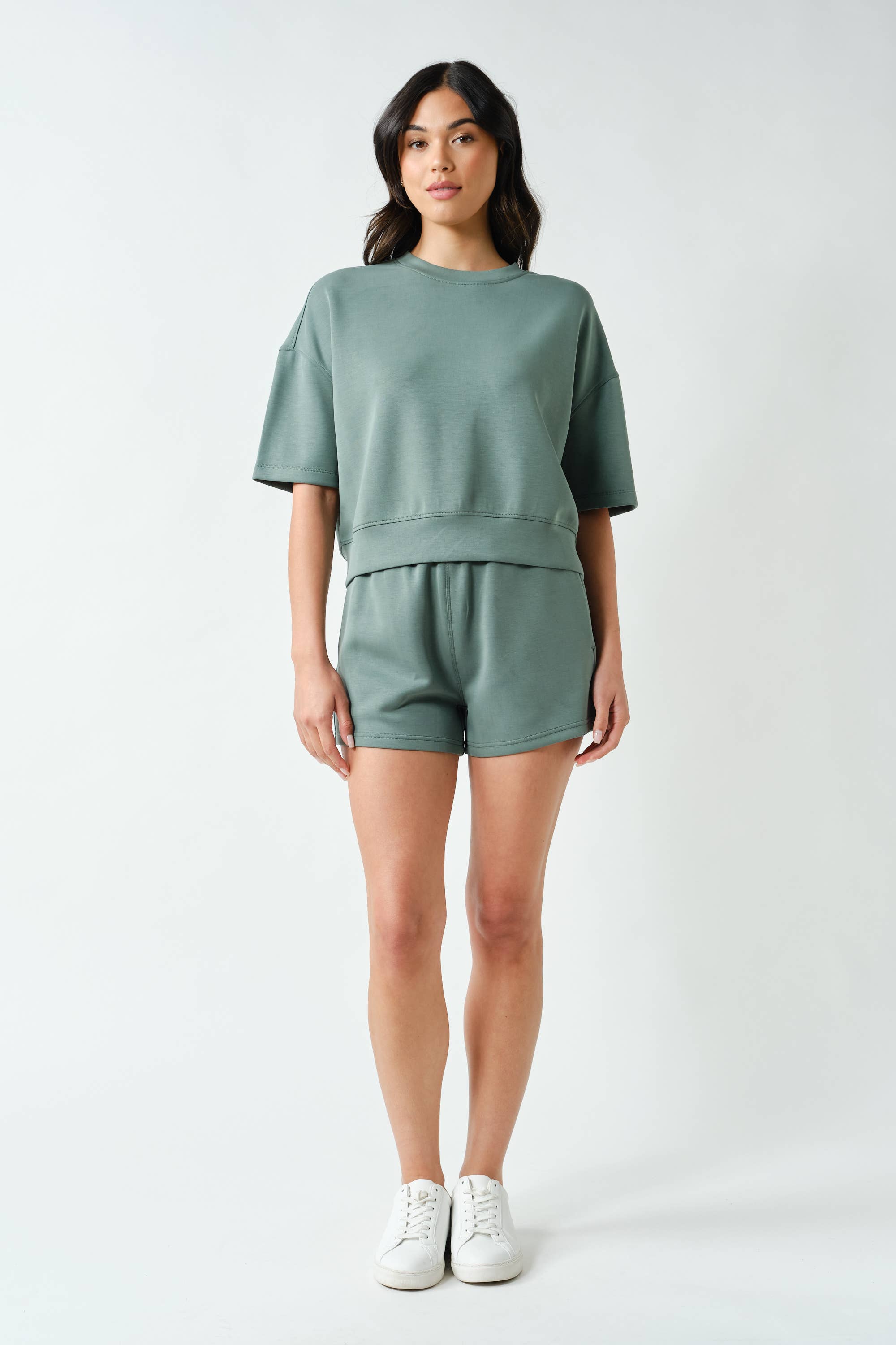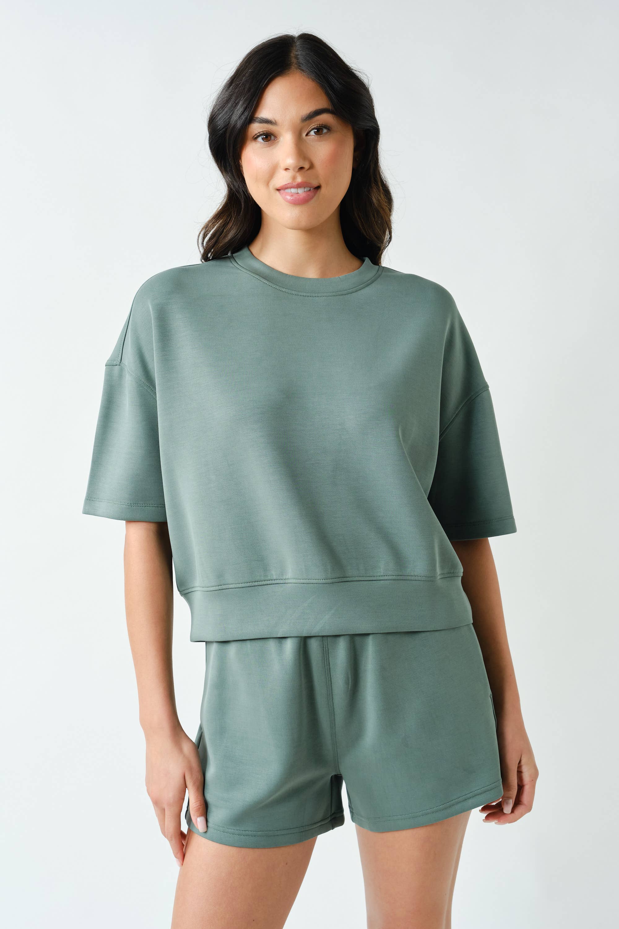 Meet your new go-to for effortless comfort — the Laguna Scuba Weekender Lounge Set. Made from our signature sand-washed scuba fabric with a buttery-soft, spongy hand feel, this matching tee and short duo features a relaxed, drop-shoulder silhouette with a slightly cropped fit. The shorts are designed with an elastic waistband and side pockets for an easy, laid-back look that feels as good as it looks.