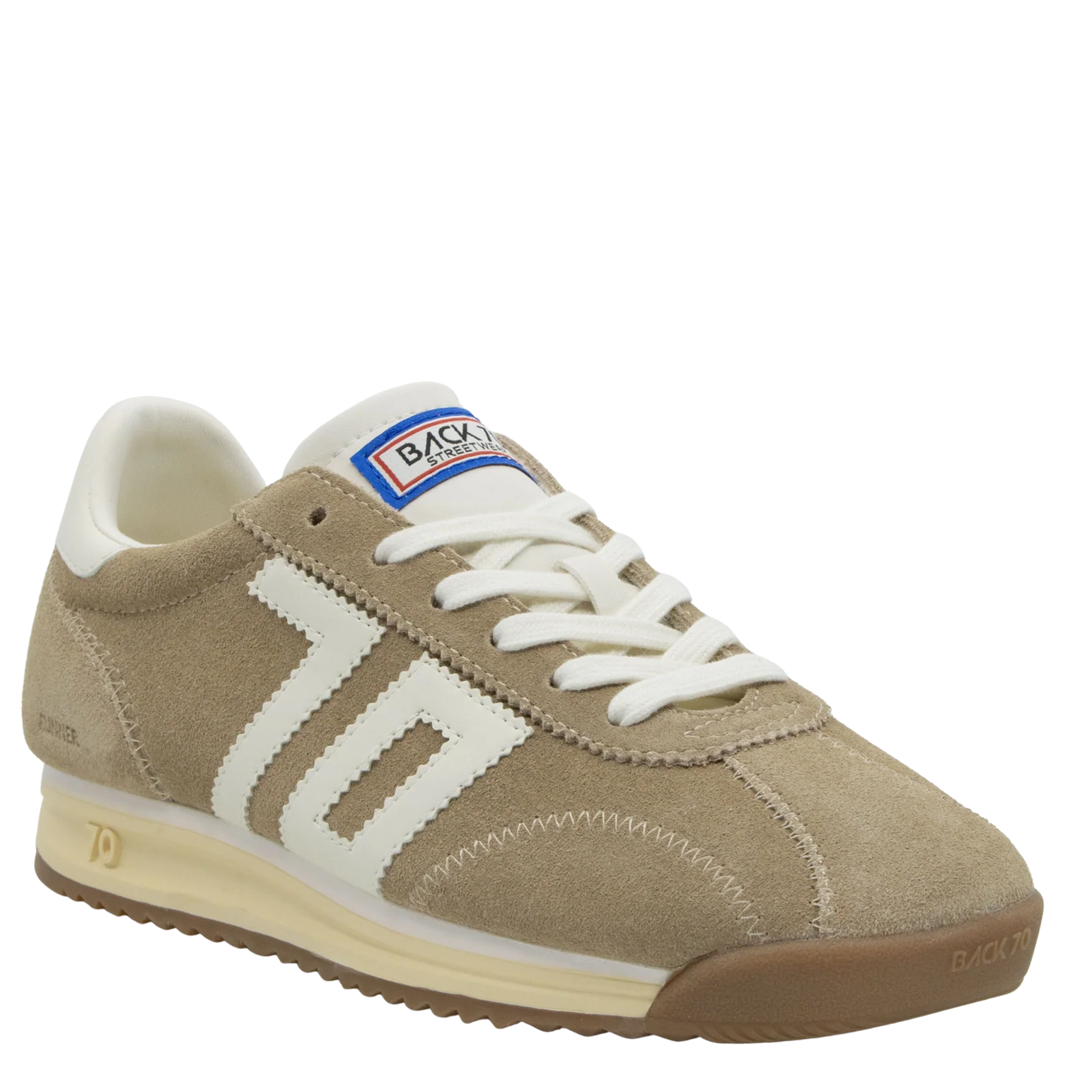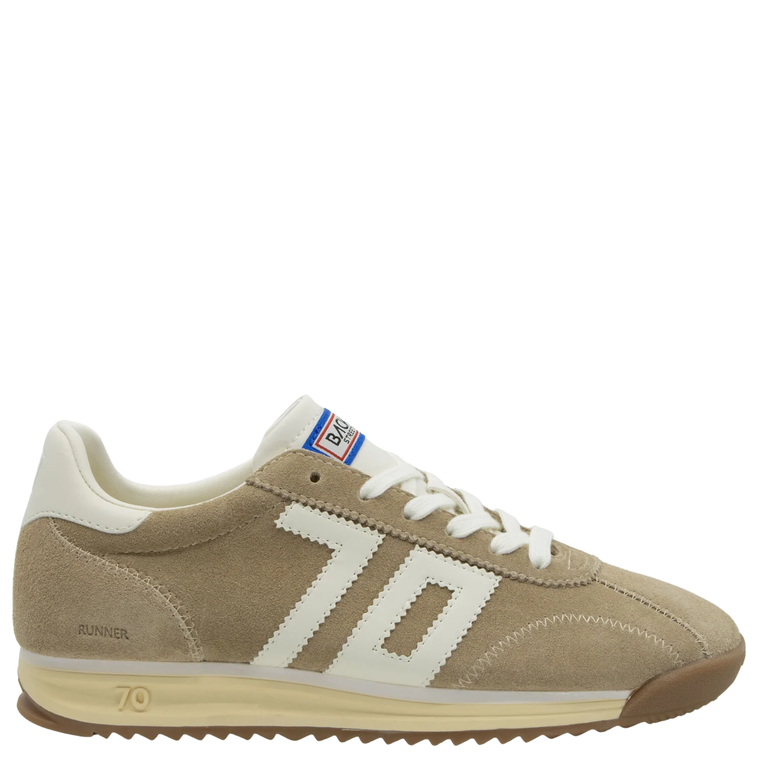 Lightness engineered for movement, Runner is a well balanced sneaker that blends form and function. Fluid design and an uplifting energy are shaped with cocooning, modular structures and abstract shapes found embedded within a calming, monochrome palette. Hand crafted in exceptional quality materials, this style elevates organic casual wear and utility basics, unearthing an authentic softness that echoes complexity and dimension. Featuring a lightly elevated sole, Back 70¿s heritage label and signature emblem.
