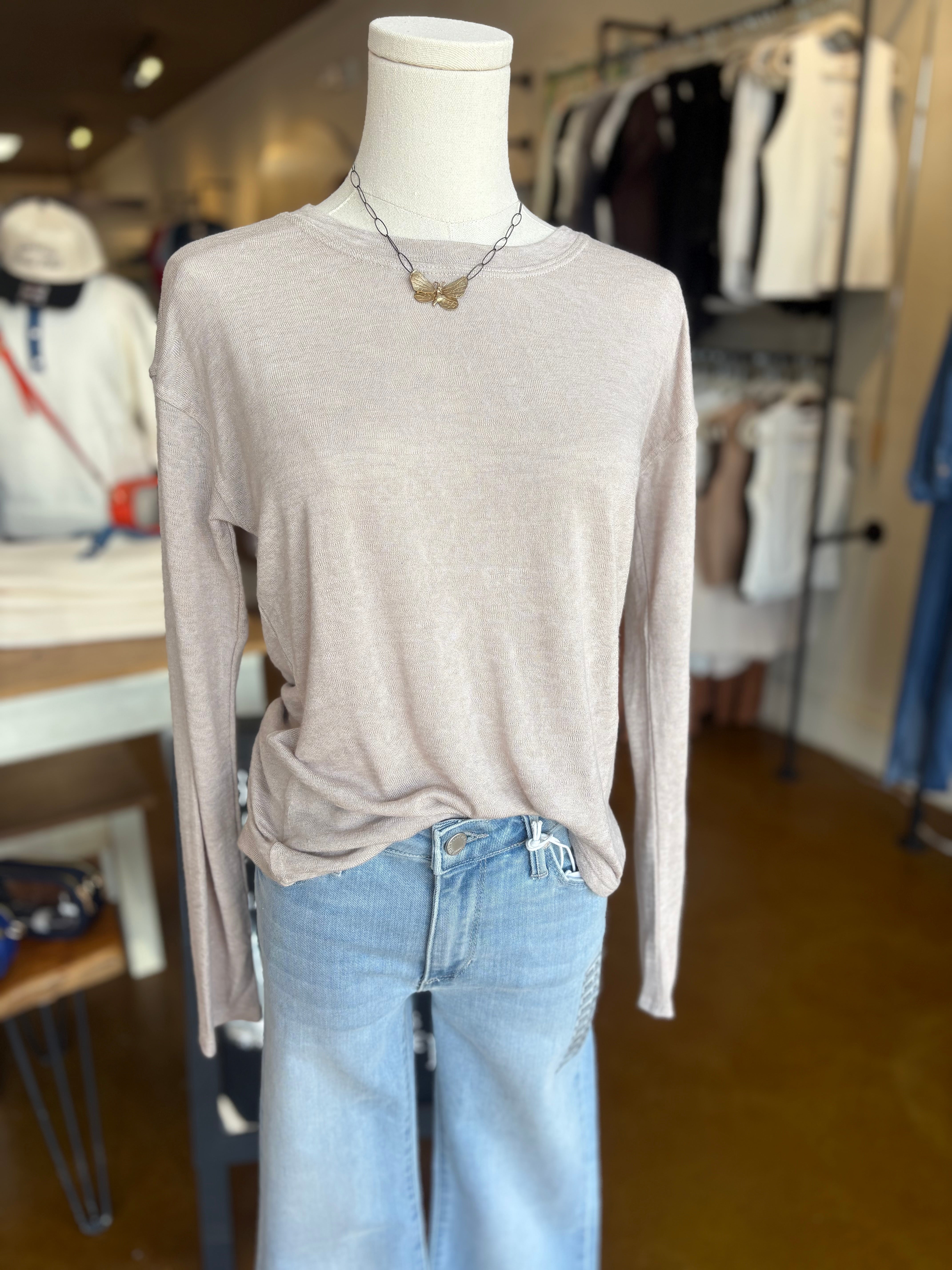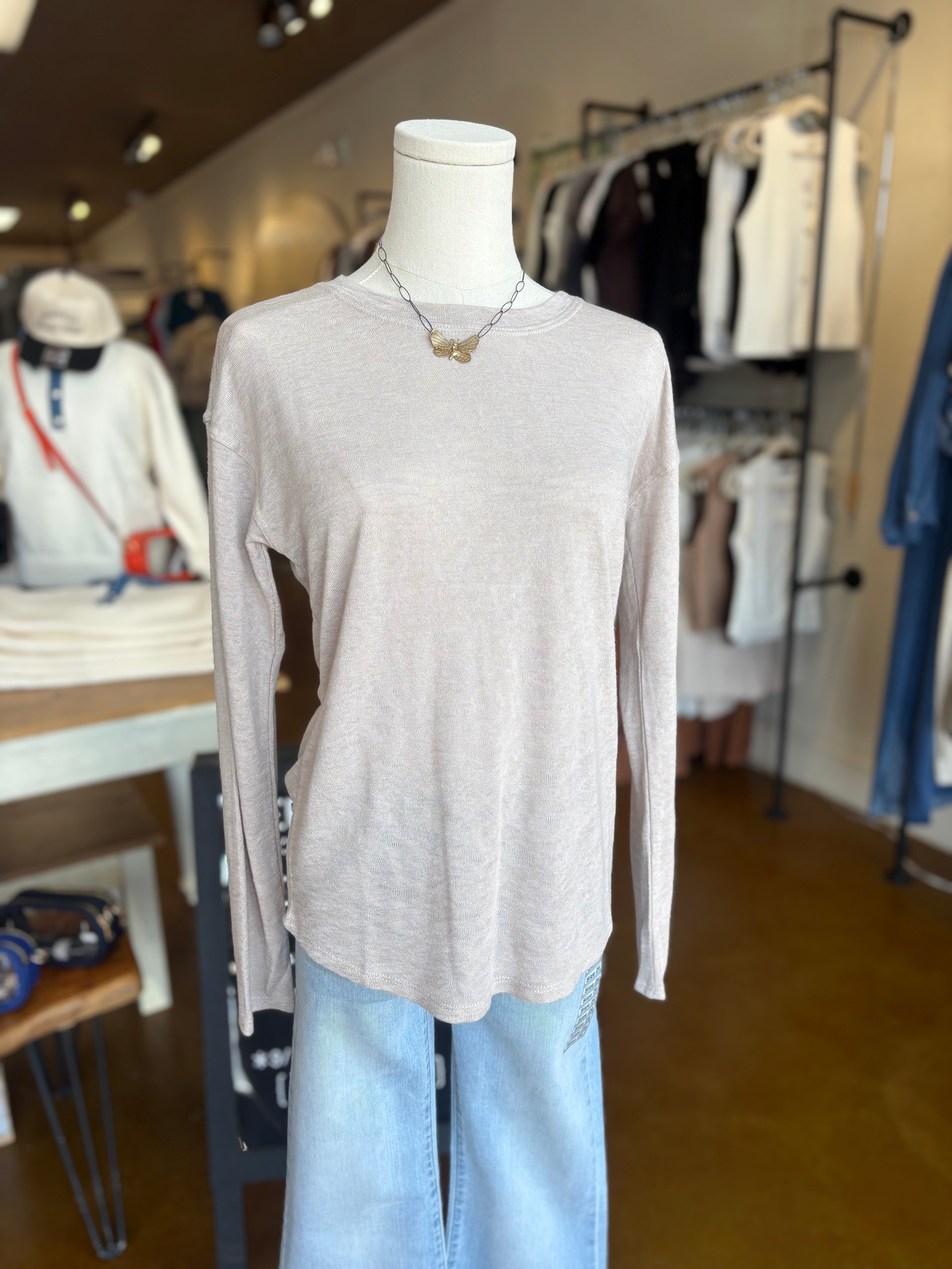 This soft, textured basic tee is perfect to transition into the fall season. The beige color pairs well with denim, black, brown, or any color!