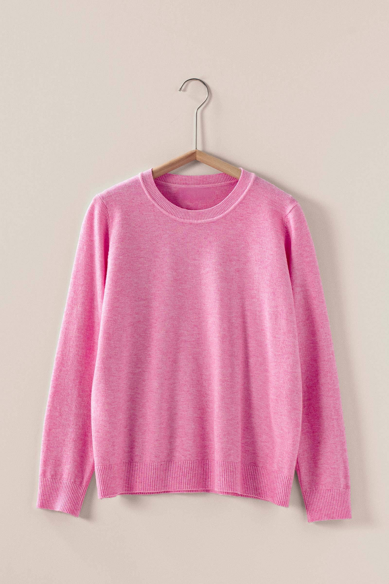 Design: Features a timeless round neckline with ribbed cuffs and hem